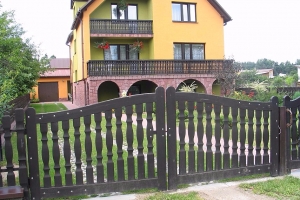 Konstrukcja bramy zrobiona jest ze specjalnego gatunku świerku który zapewnia stabilność i całej konstrukcji poza tym jest odporny na skręcenia w przypadku długich elementów.
